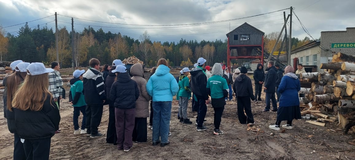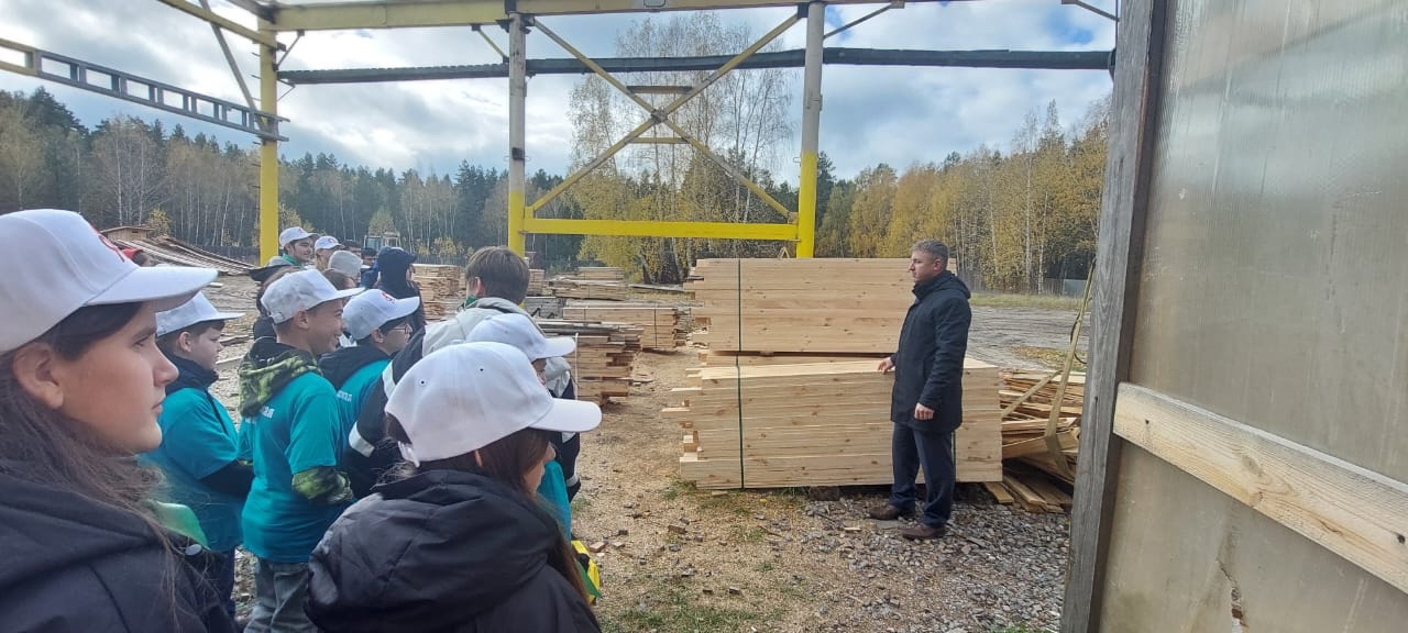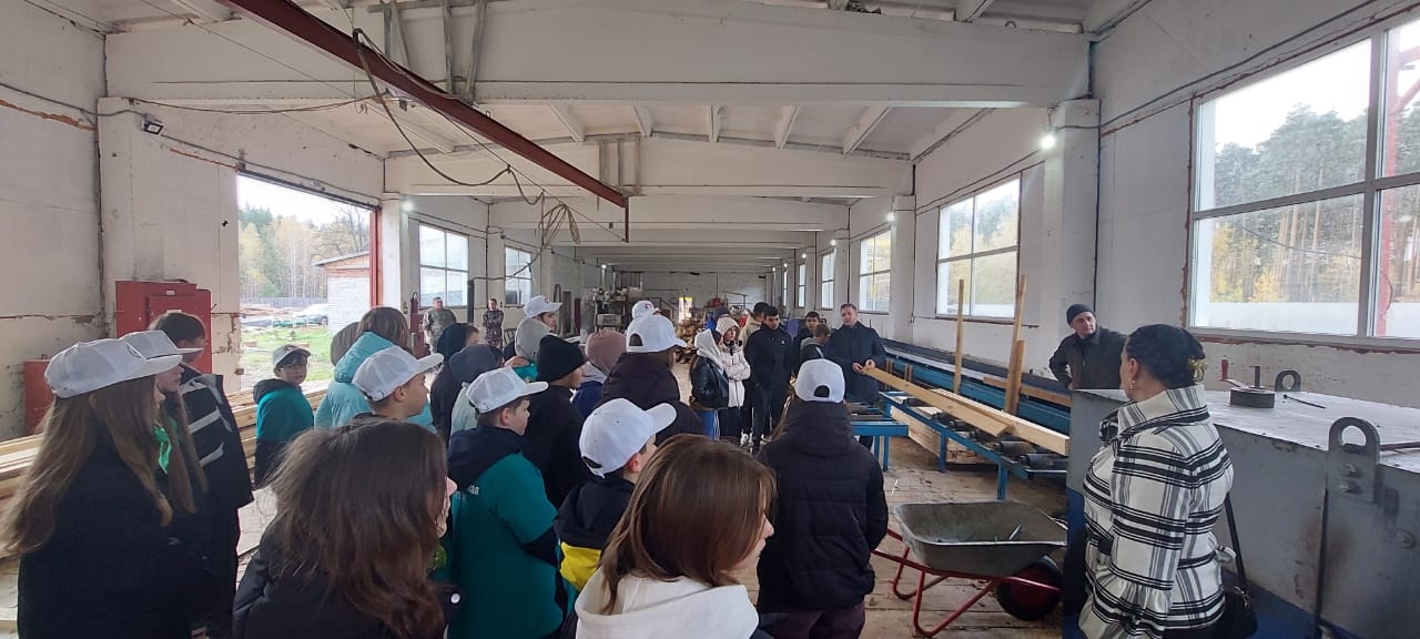 В деревообрабатывающем цеху Вадим Анатольевич познакомил ребят с оборудованием по переработке древесины.
