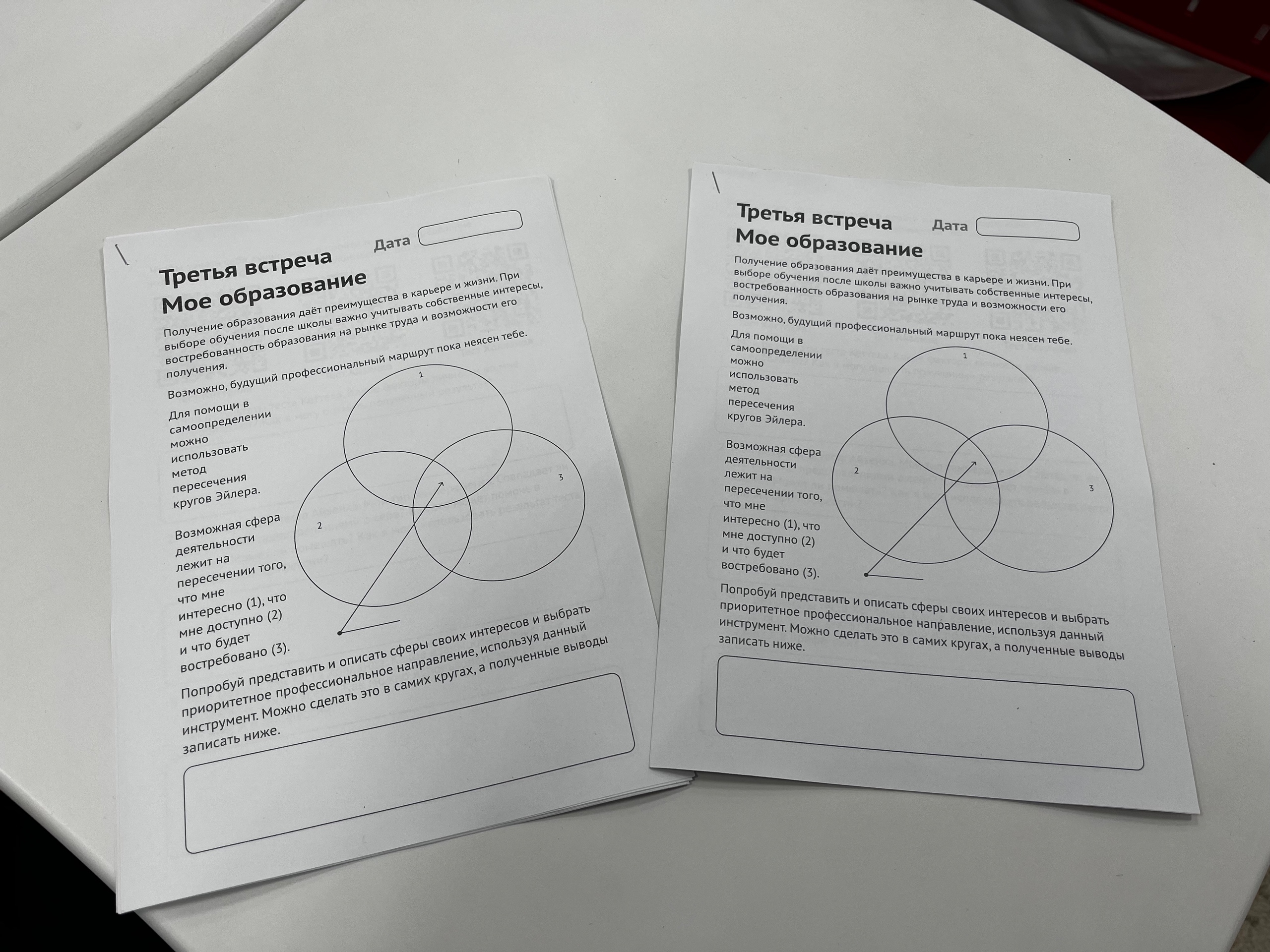 С помощью метода Эйлера мы создавали визуальную карту своих увлечений. Открытием для многих стал широкий спектр интересов — от IT и робототехники до искусства и дизайна!